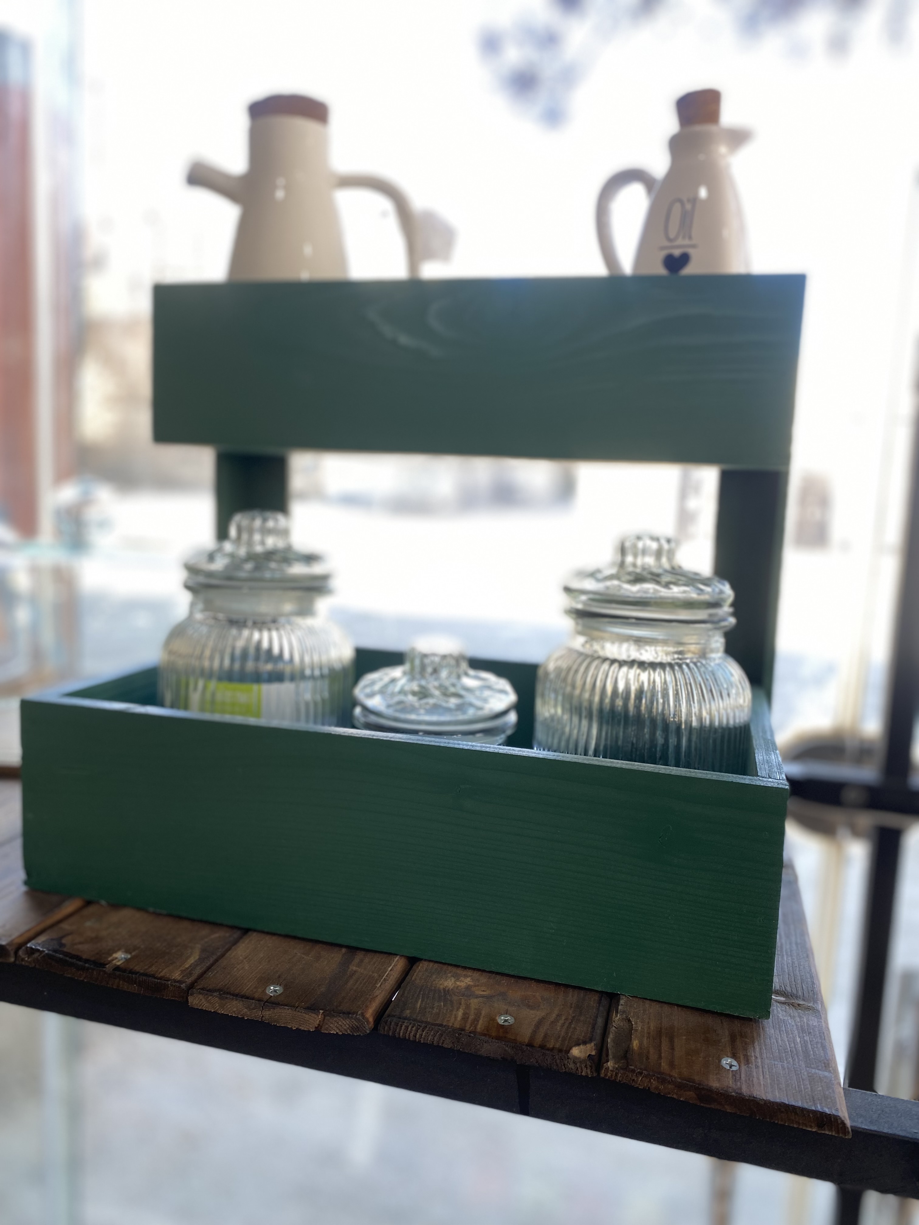 استند چوبی آشپزخانه 2طبقه کشو و آویز لیوان دار
