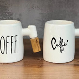 ماگ سرامیکی دسته چوبی تکست دار لیوان سرامیکی