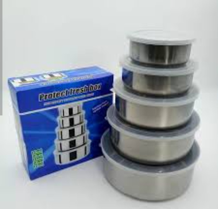 ظروف نگهداری غذا 5پارچه استیل درب سیلیکونی قطر 10.12.14.16.18