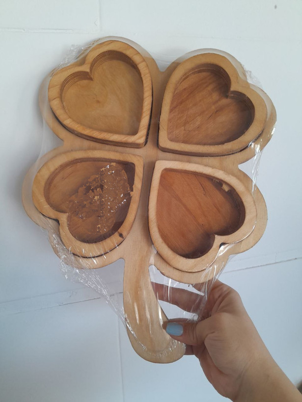 اردو خوری چوبی ۴پیاله مدل برگ دسته دار