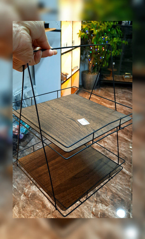 استند شیک فلزی آشپزخانه دو طبقه مربعی شکل کف چوبی