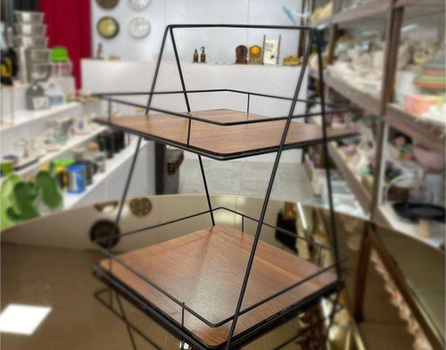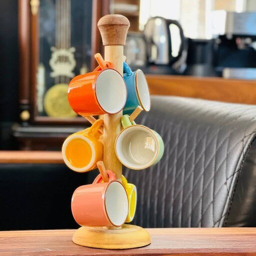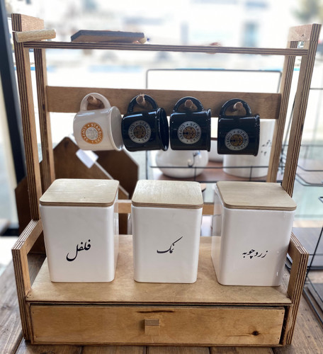 استند چوبی آشپزخانه 2طبقه کشو و آویز لیوان دار
